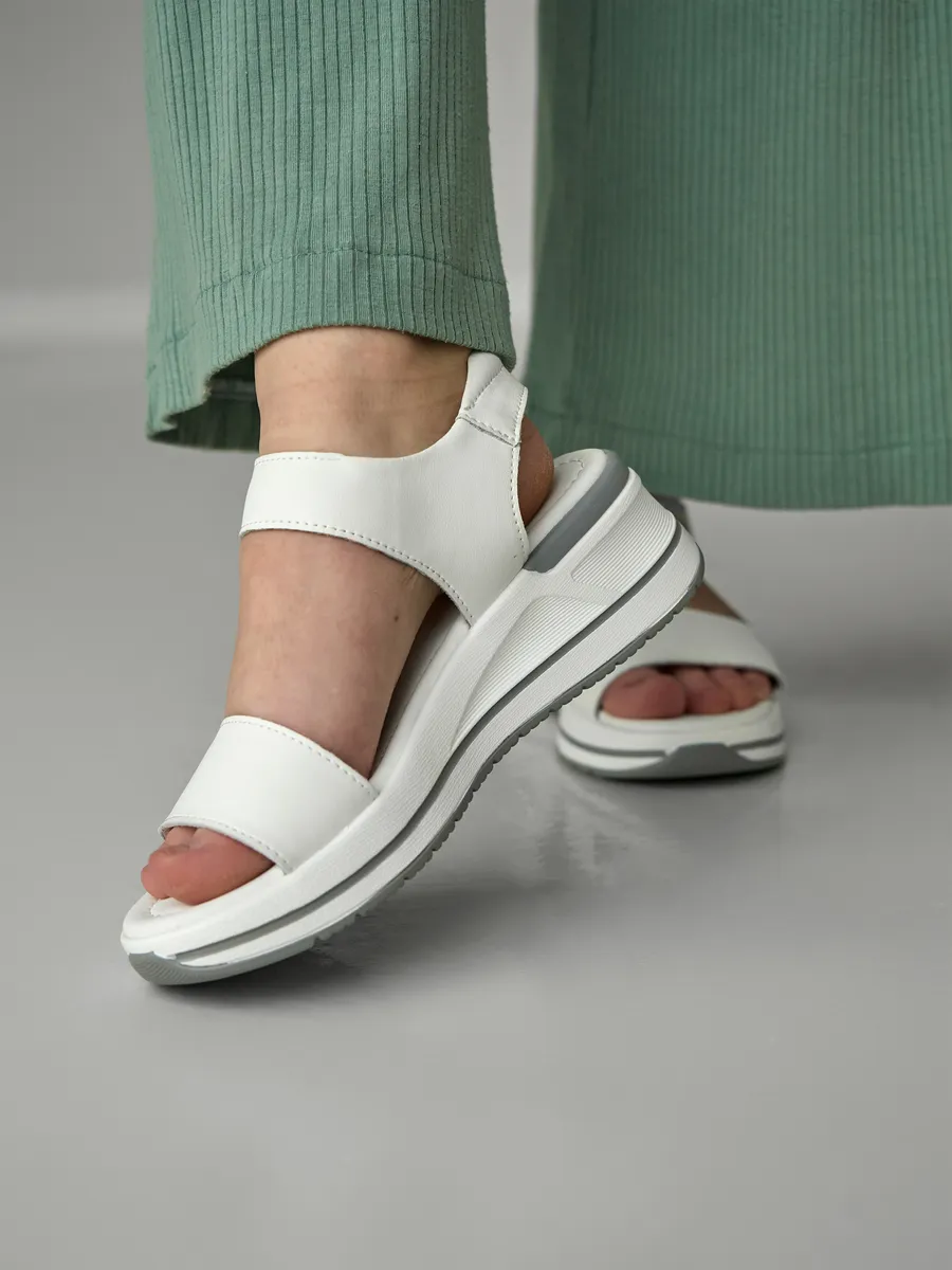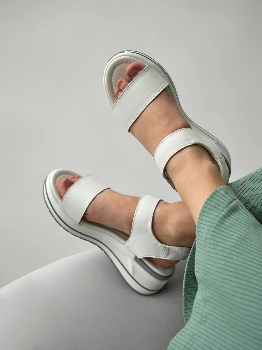 Лето — время лёгкости, свободы и ярких образов. Женские босоножки на платформе — стильная модель сочетает в себе последние тренды 2025 года, удобство и универсальность. Выполненные из композитной кожи, они сочетают в себе элегантность, удобство и модные тренды. Лёгкий и стильный дизайн делает их универсальной обувью для женщин, которые ценят комфорт и эстетику. Мягкая стелька из экокожи идеально подстраивается под ногу, создавая ощущение комфорта при каждом шаге. Открытый носок и пятка позволяют ногам дышать, а удобные ремешки на липучках обеспечивают быструю фиксацию и регулируемую посадку. Модель оснащена гибкой и лёгкой подошвой, которая добавляет устойчивости и подходит как для повседневных прогулок, так и для длительных поездок, так как благодаря хорошим амортизирующим свойствам снижает нагрузку на стопу. Натуральные материалы верха делают босоножки прочными и долговечными, а их белый цвет придаёт элегантность и легко сочетается с летним гардеробом. Эти босоножки станут отличным дополнением к повседневному образу. Благодаря стильному дизайну и удобной посадке они отлично смотрятся с летними платьями, юбками, шортами и лёгкими брюками. Добавьте в свою коллекцию модные женские босоножки на платформе и наслаждайтесь комфортом, лёгкостью и элегантностью!