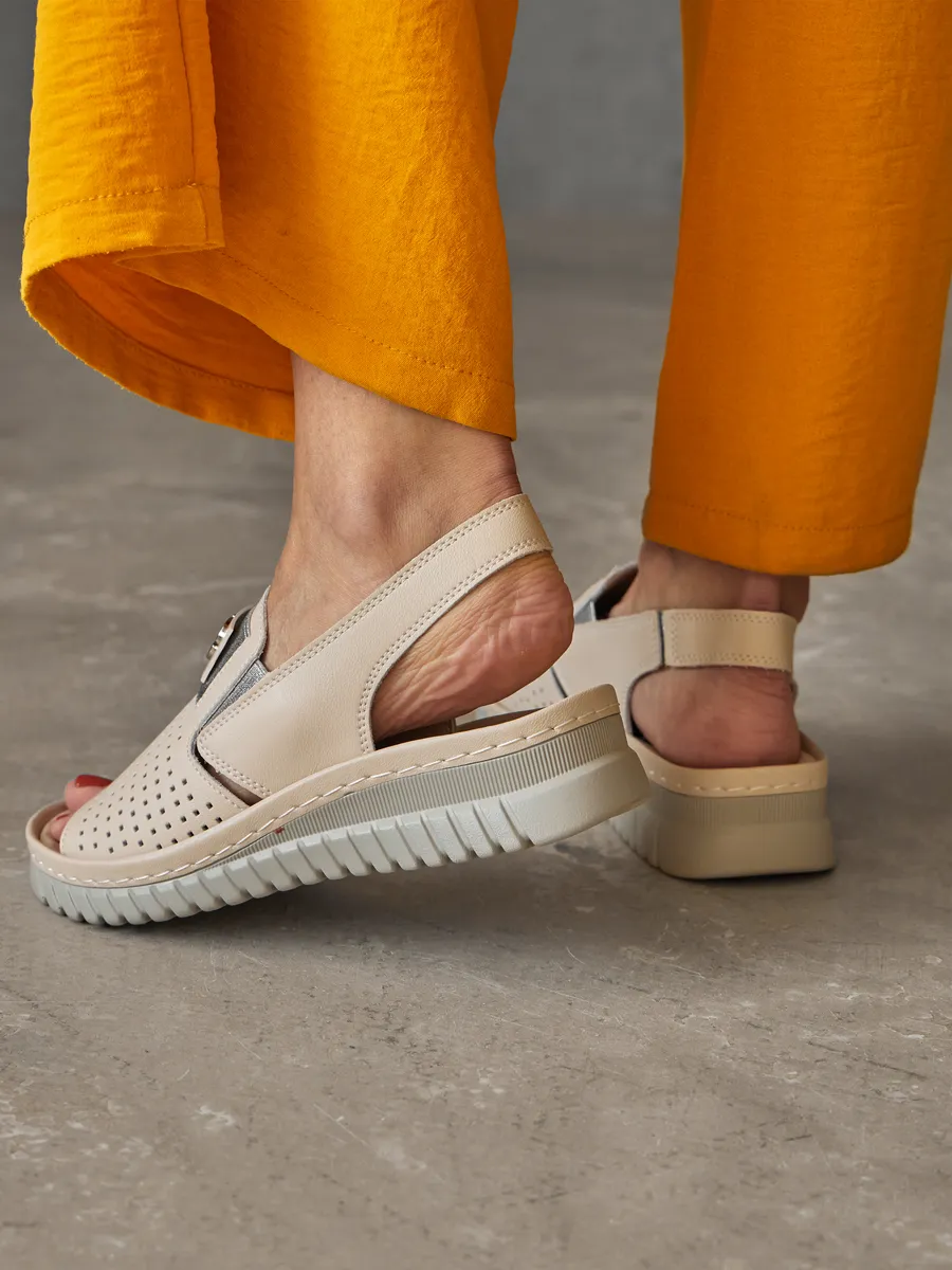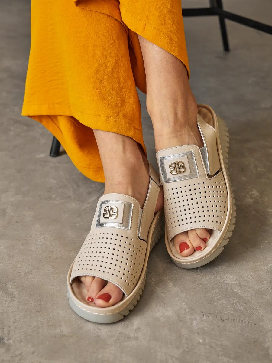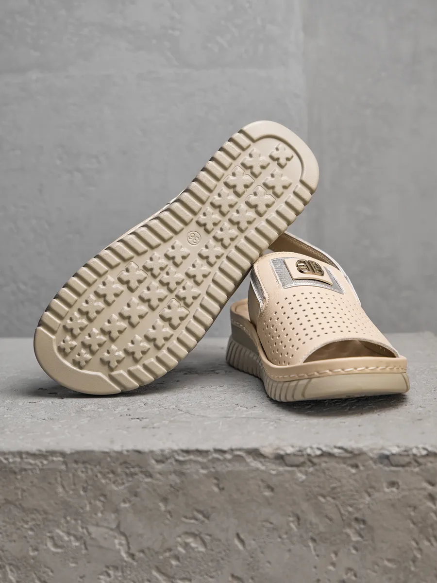 Эта модель из натуральной кожи создана для тех, кто стремится к гармонии между стилем и практичностью. Белый цвет делает босоножки универсальными, позволяя им легко сочетаться с платьями, юбками, сарафанами и лёгкими брюками, добавляя образу нотку свежести и элегантности. Лаконичный дизайн с открытым носком и пяткой обеспечивает естественную вентиляцию, предотвращая перегрев ног даже в самые жаркие дни.