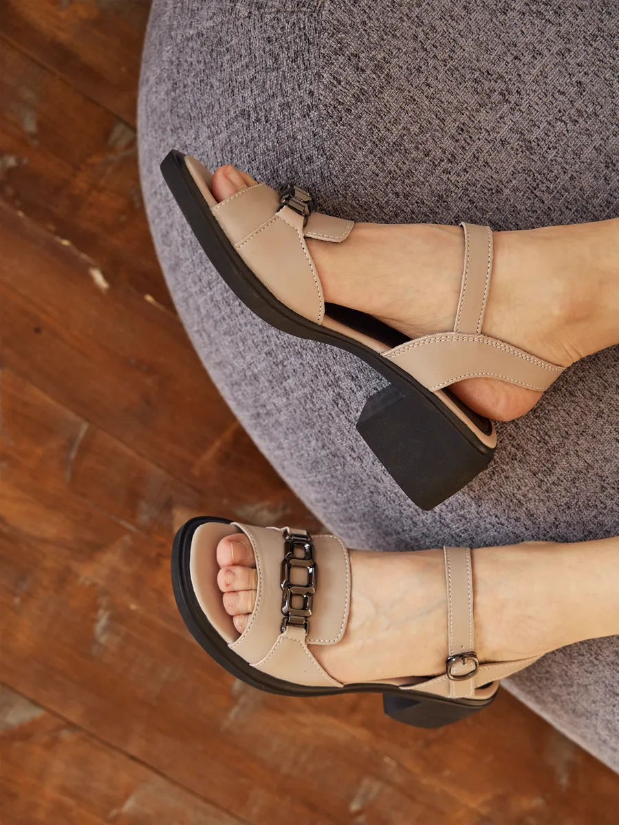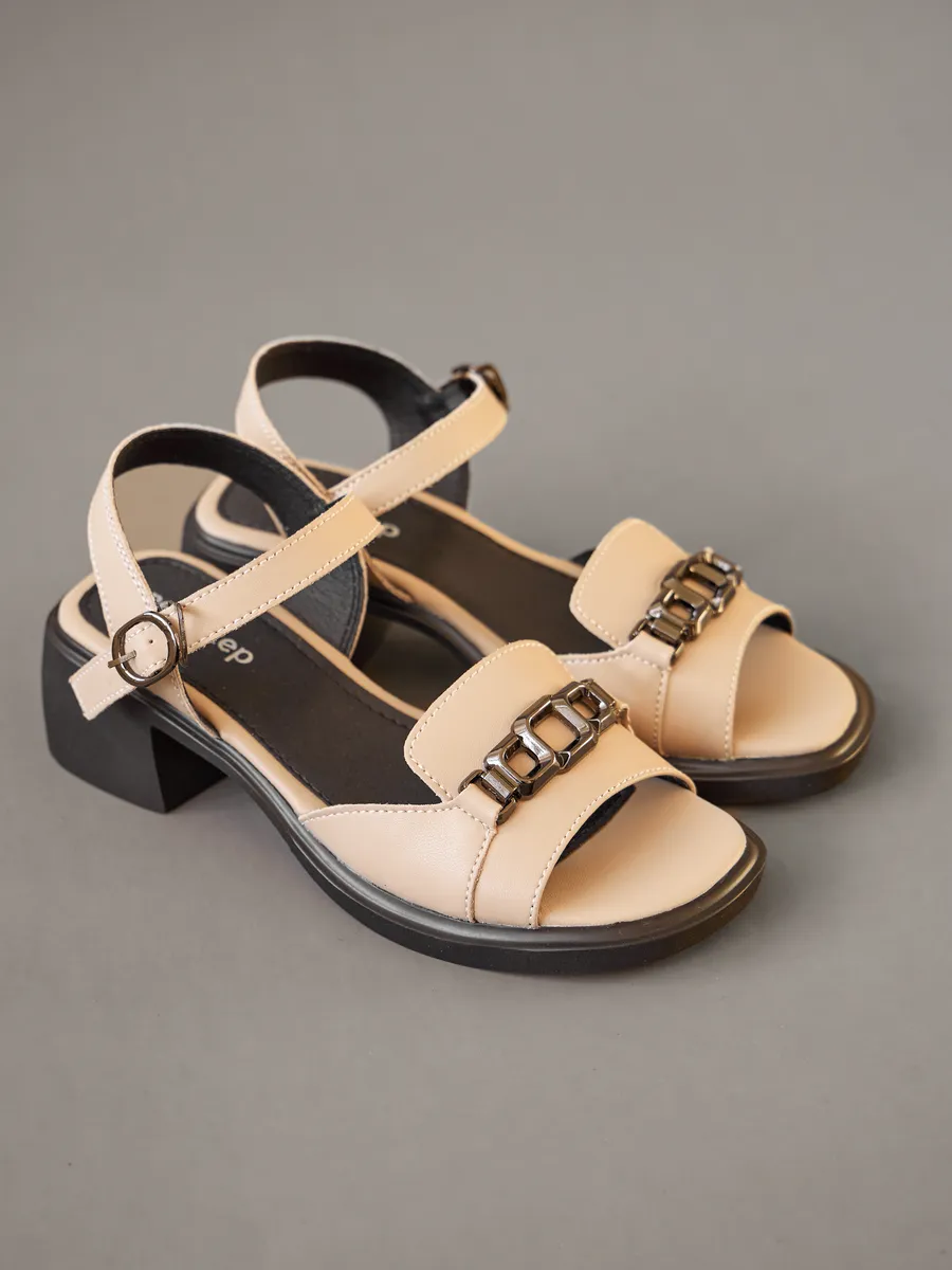 Босоножки женские летние на каблуке бежевые 51-BKY4-12-108k