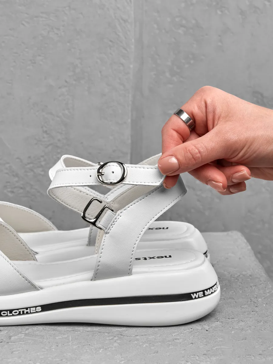 Эти женские босоножки — идеальное решение для летнего сезона. Выполненные из высококачественной натуральной кожи, они сочетают в себе лёгкость, мягкость и прочность, что делает их идеальными как для длительных прогулок, так и для торжественных мероприятий. Белый цвет придаёт модели свежесть и элегантность, отлично подчёркивая загар и легко комбинируясь с любыми оттенками одежды — от пастельных до ярких.