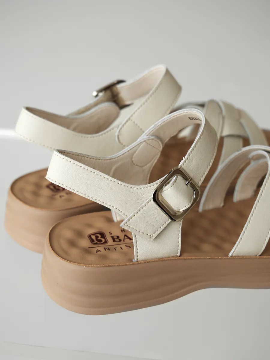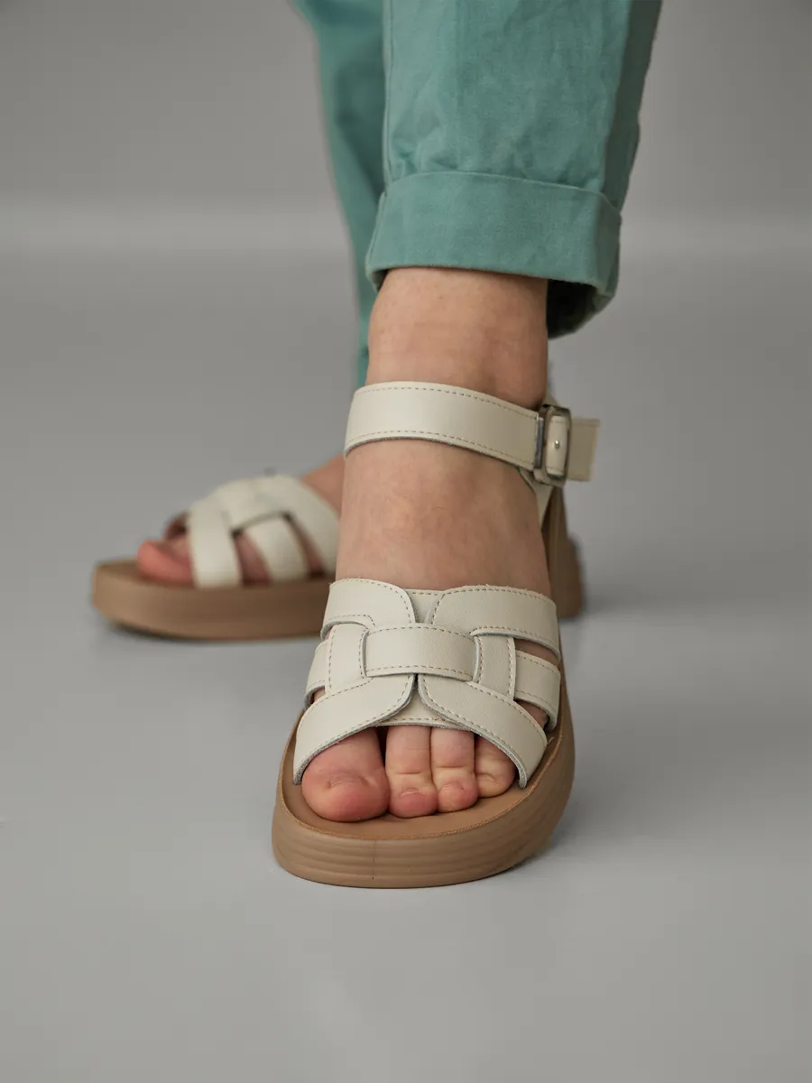 Эта модель из натуральной кожи создана для тех, кто стремится к гармонии между стилем и практичностью. Бежевый цвет делает босоножки универсальными, позволяя им легко сочетаться с платьями, юбками, сарафанами и лёгкими брюками, добавляя образу нотку свежести и элегантности. Лаконичный дизайн с открытым носком и пяткой обеспечивает естественную вентиляцию, предотвращая перегрев ног даже в самые жаркие дни.