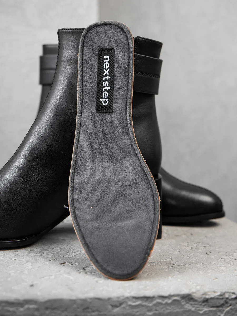 Эта удобная обувь на плоской резиновой подошве отличается прекрасной амортизацией ударов, что делает каждый шаг лёгким и приятным. Гибкий, прочный материал и низкий каблук обеспечивают комфорт даже при длительной ходьбе. Благодаря этому ботильоны подходят как для повседневных прогулок, так и для нарядных случаев, удачно сочетая моду и практичность.