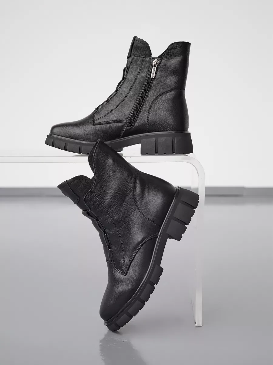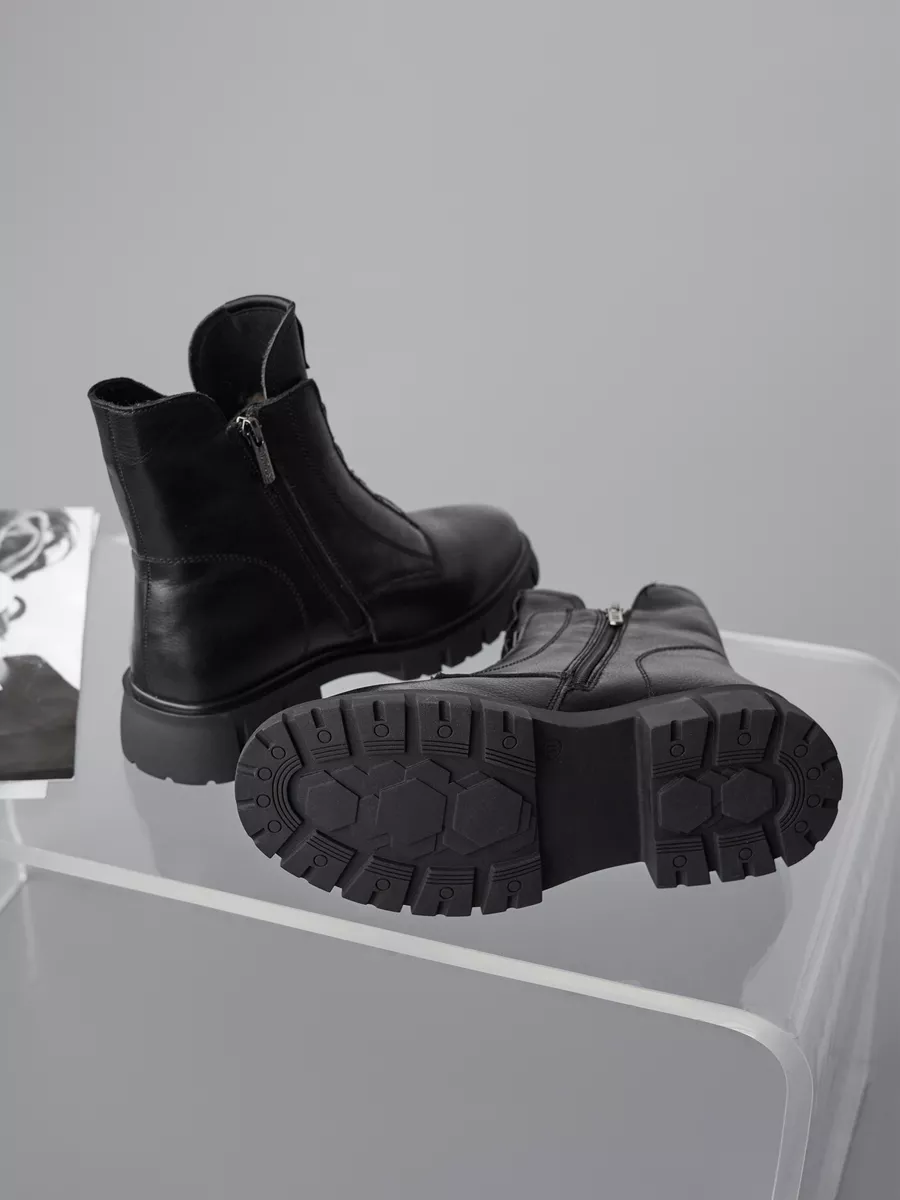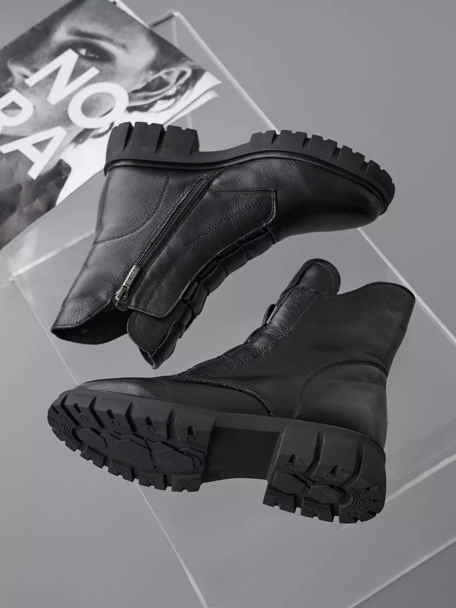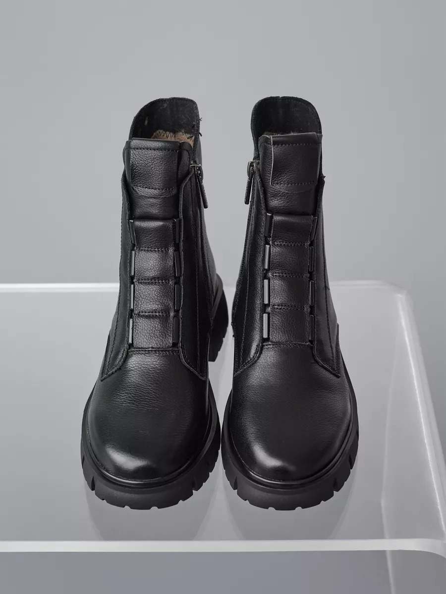 Эти женские ботинки специально разработаны для зимы, обеспечивая высокий уровень комфорта. Изготовленные из натуральной кожи, они гарантируют, что ваши ноги останутся теплыми в холодное время года. Эти утепленные сапоги идеально подходят для тех, кто ищет стильные и практичные решения. Полуботинки на платформе создают модные образы и обеспечивают уверенность на скользких поверхностях благодаря нескользящей подошве.