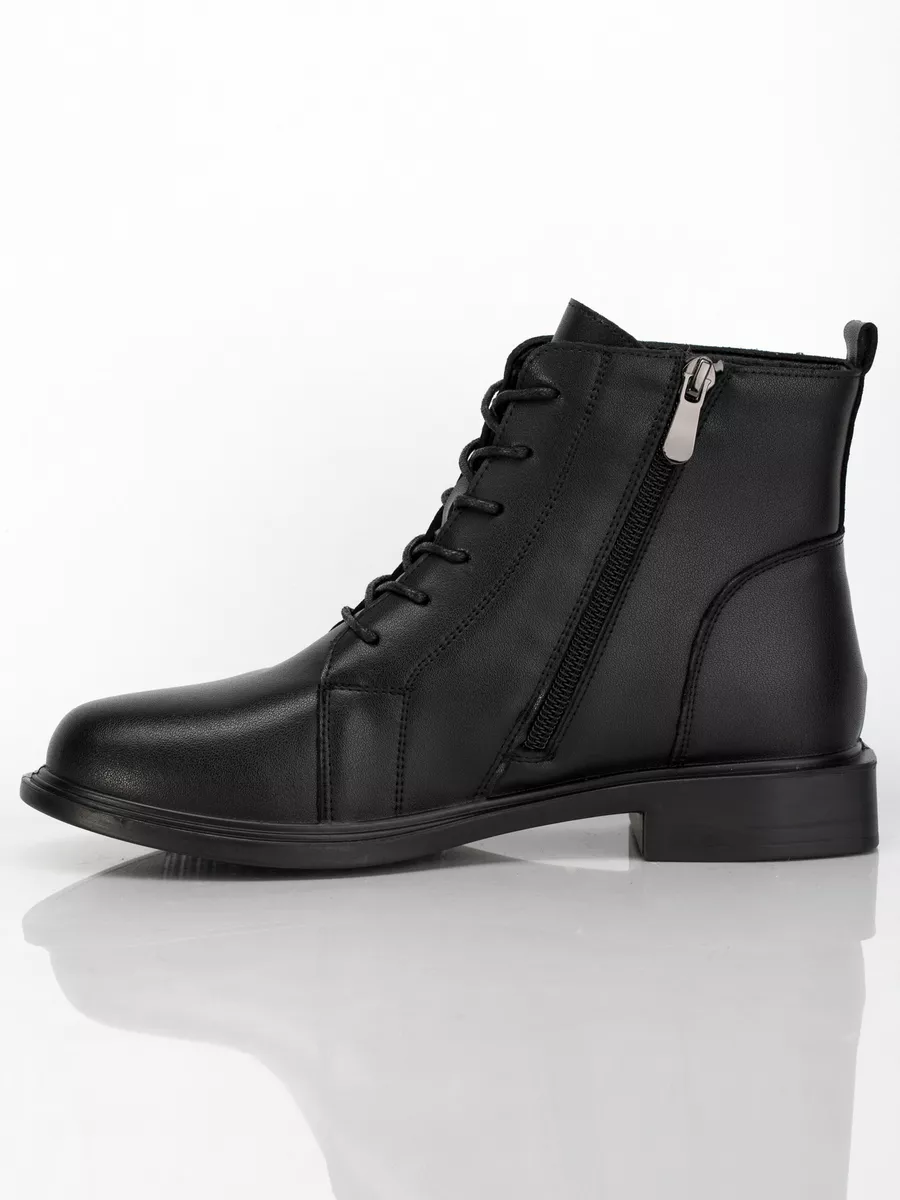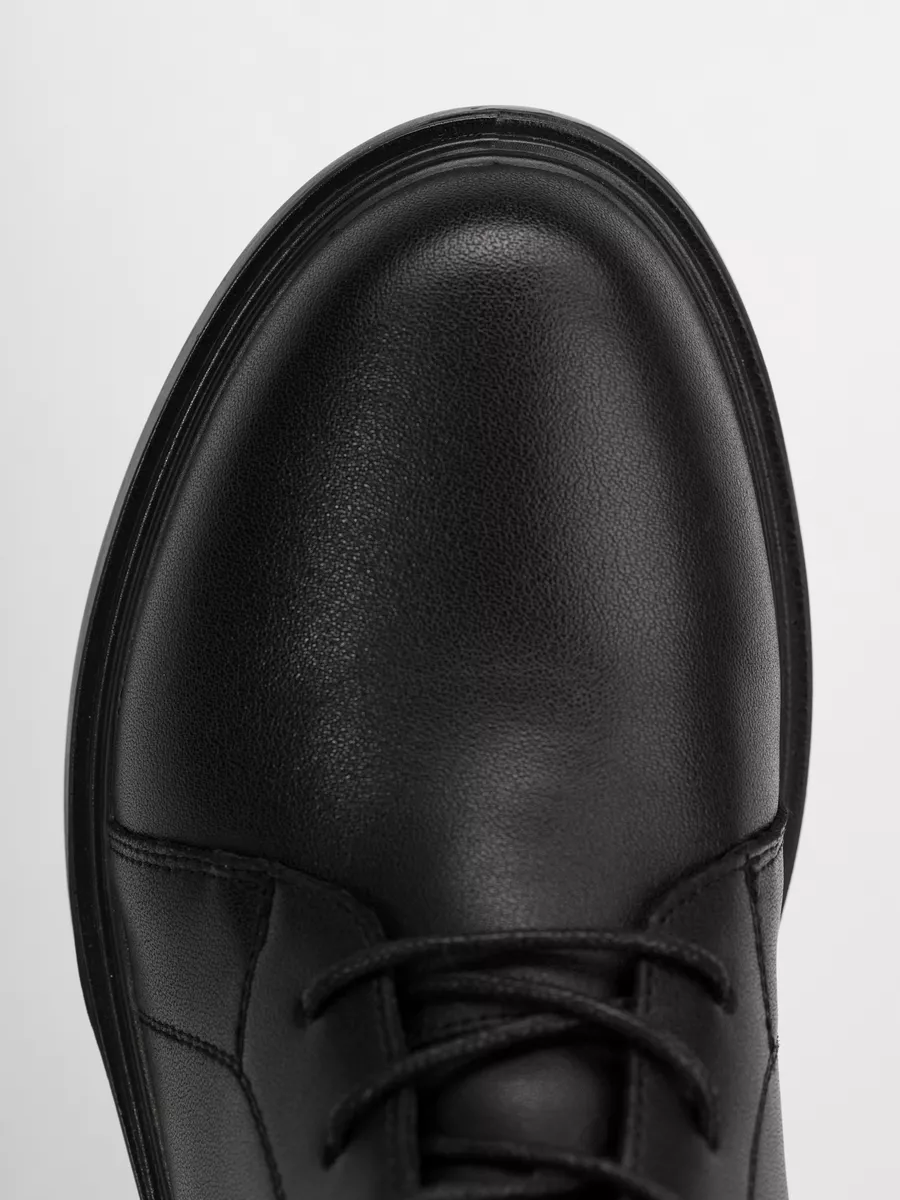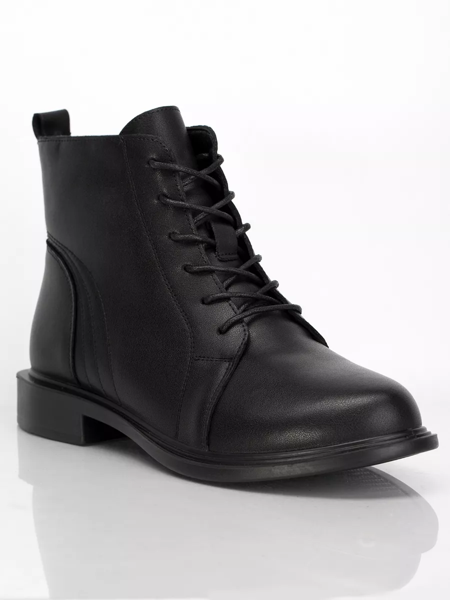 Ботинки идут размер в размер, длина стельки в 38 размере 24,5 см, длина стельки увеличивается на 0,5 см с увеличением размера. Модель хорошо подойдёт на среднюю и полную стопу. Кожаные ботинки на массивной подошве из ПУ (Полиуретан). Толщина подошвы выше 1см, чтобы стопа не ощущала дискомфорт от неровности поверхностей. Кожаные ботинки эластичные, прочные, долговечные, они хорошо пропускают воздух и не позволяют стопе потеть, создавая комфортные условия на весь день. Ботинки застёгиваются на молнию и обеспечивают идеальную посадку, которую легко отрегулировать с помощью шнуровки. Материал подкладки - натуральная байка. Подкладка из натуральной байки обеспечивает дополнительный комфорт Вашим ногам, ощущение мягкости. Материал дышит и сохраняет тепло.