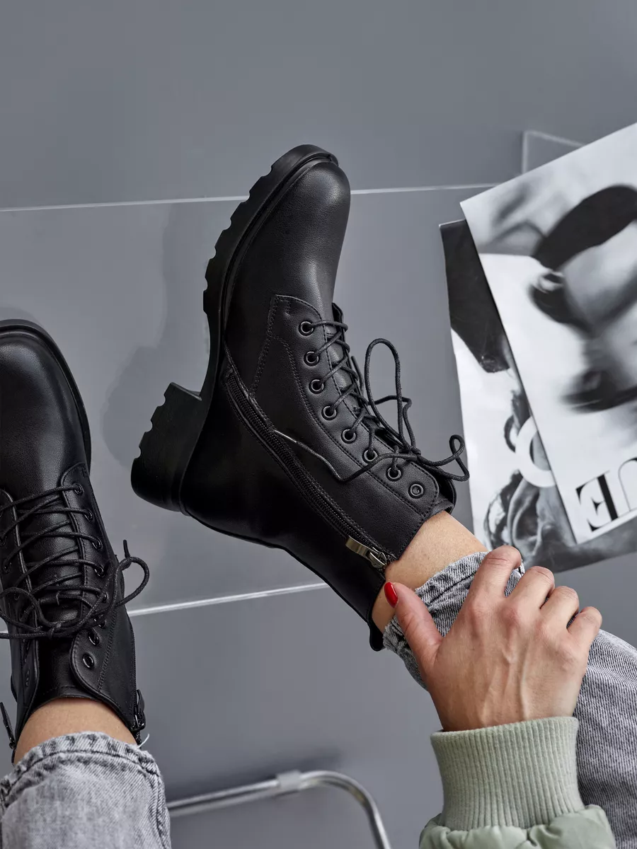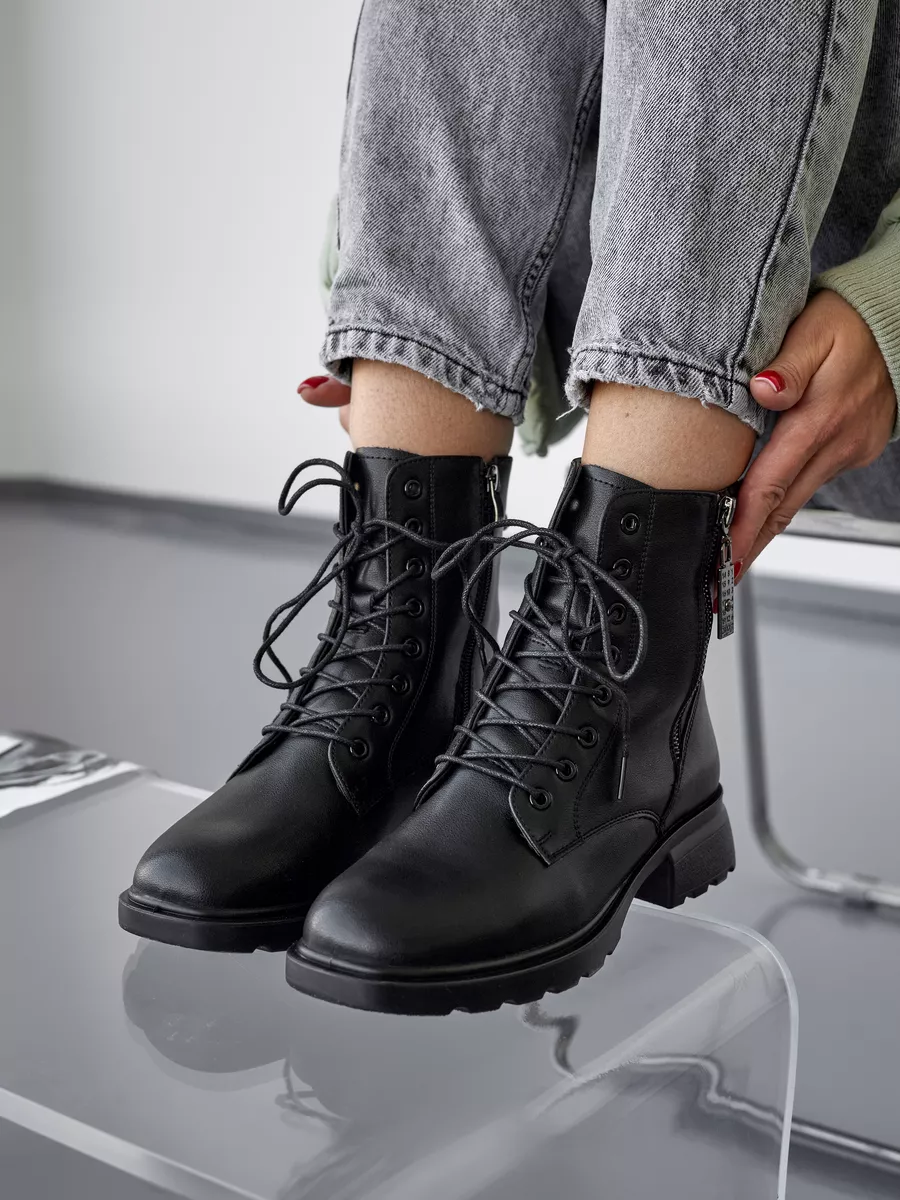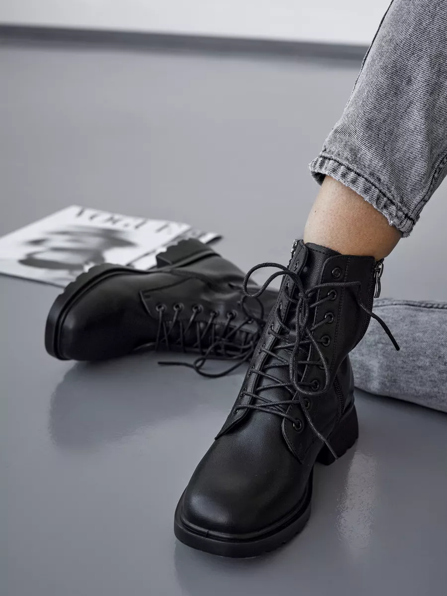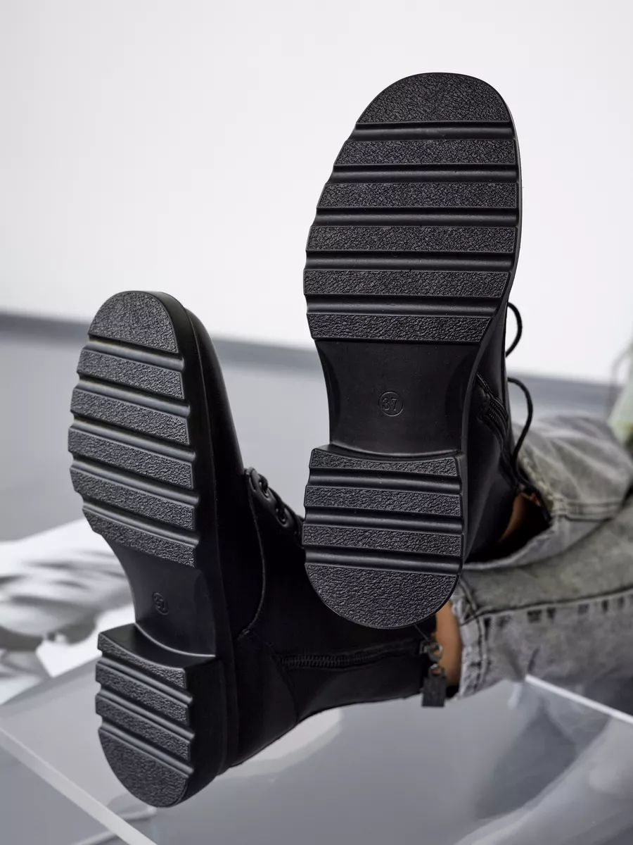 Демисезонные ботинки имеют низкий устойчивый каблук, который добавляет элегантности, но при этом остаётся удобным даже при длительной носке. Лёгкая и гибкая подошва создаёт амортизацию, снижая нагрузку на ноги, а мягкая внутренняя подкладка поддерживает оптимальный микроклимат внутри обуви. Благодаря анатомической посадке, ботинки комфортно сидят даже на широкой стопе, не сдавливая ногу.