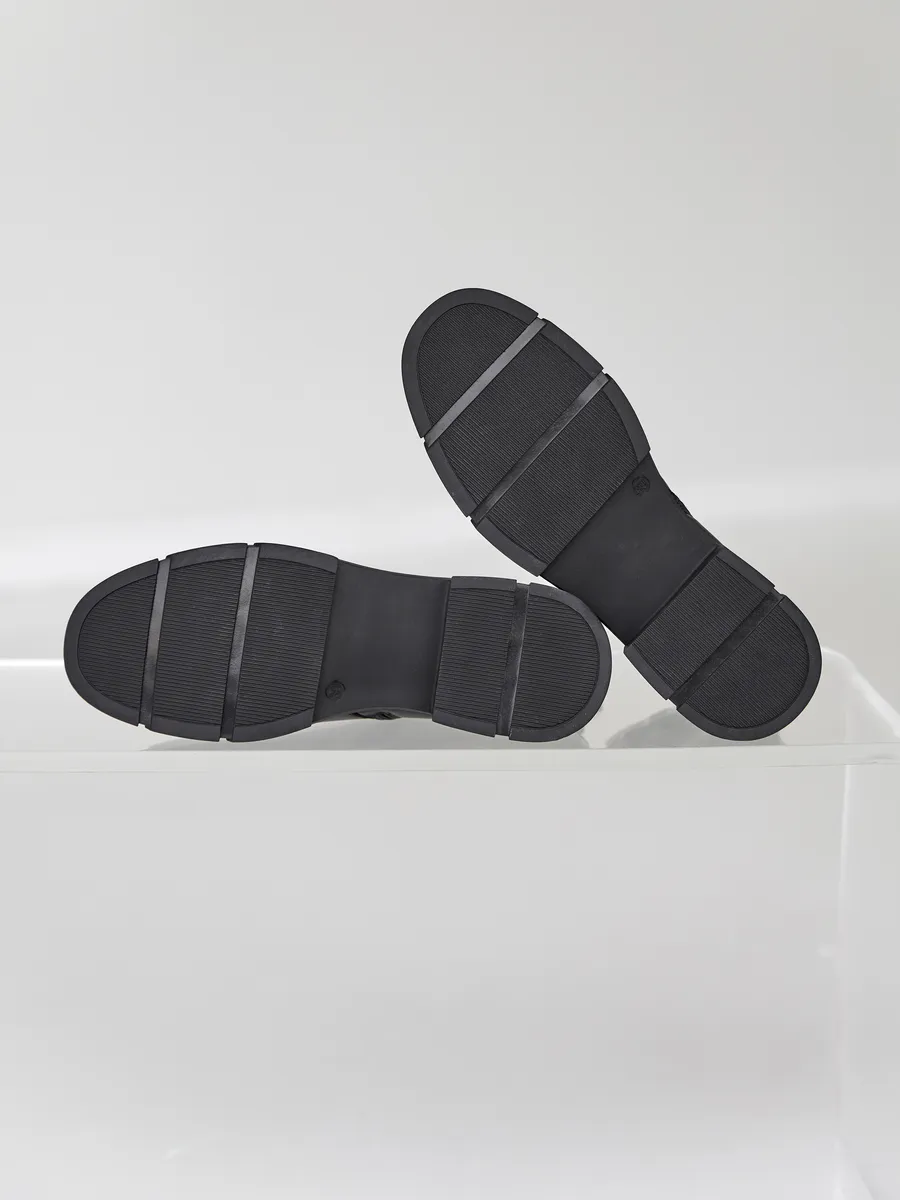 Высокая модель ботинок оснащена молнией и шнуровкой, что позволяет регулировать посадку и индивидуально подстроить их под вашу ногу, создавая стильный и универсальный образ. Классический черный цвет, который никогда не выходит из моды, делает ботинки идеальным дополнением к любому стилю, будь то повседневный образ, кэжуал, молодежный или праздничный наряд. Эта модель подходит для всех возрастов — от подростков до взрослых женщин, и органично сочетается с различными элементами гардероба.
