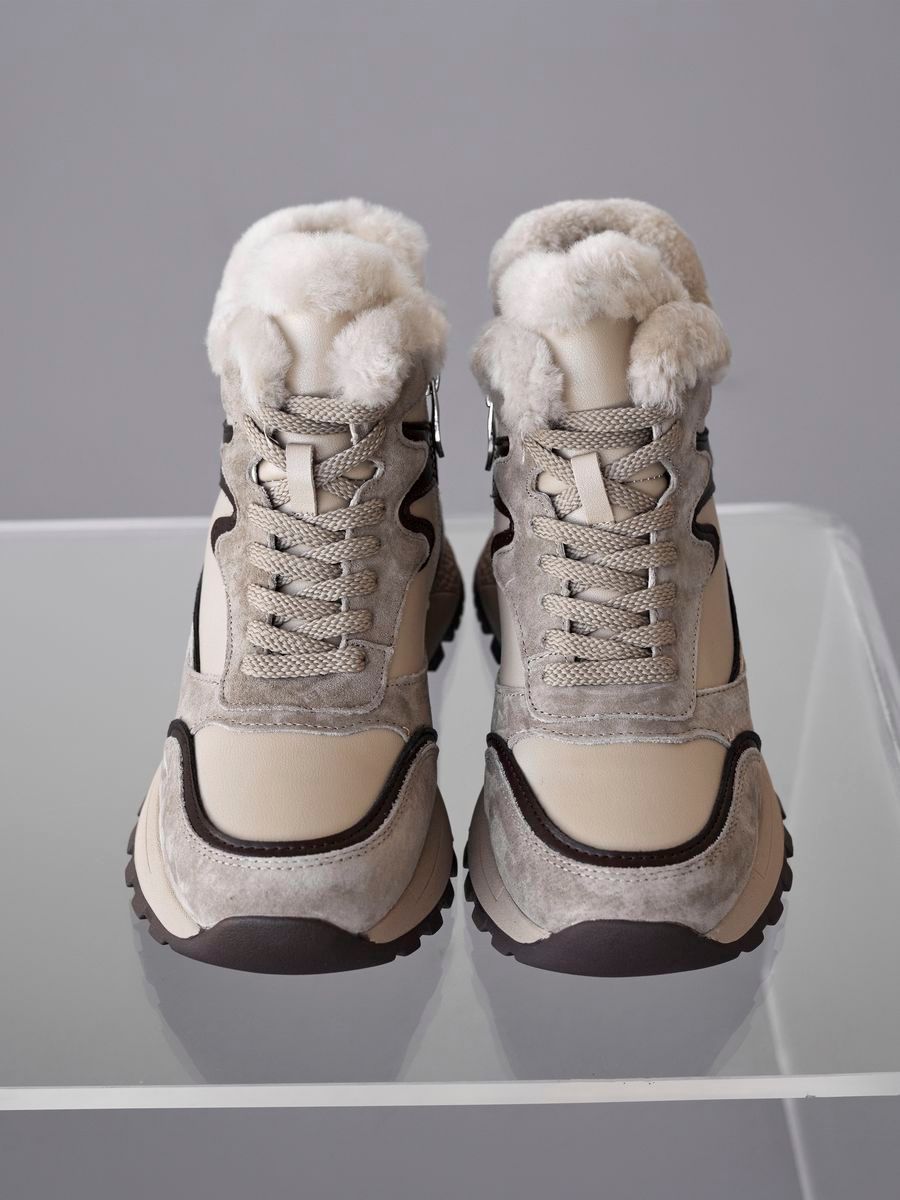 Эти стильные ботинки бежевого цвета подойдут как для женщин, так и для подростков, которые ищут модные и удобные решения на каждый день. Универсальный дизайн позволяет сочетать ботинки с повседневной одеждой — джинсами, леггинсами или даже юбками, что делает их неотъемлемой частью любого зимнего образа. В то же время, спортивные элементы дизайна добавляют динамичности и современности, что особенно актуально для активных людей, ведущих насыщенный образ жизни.
