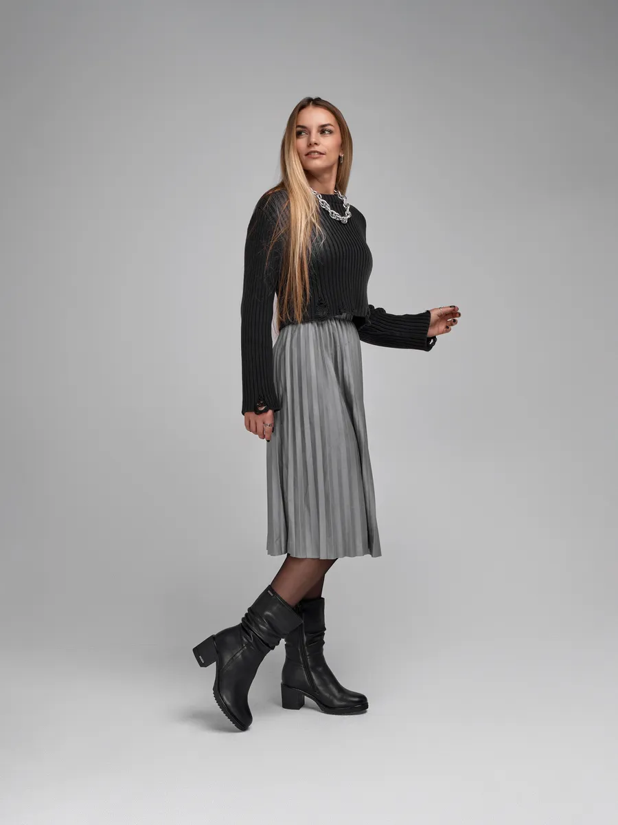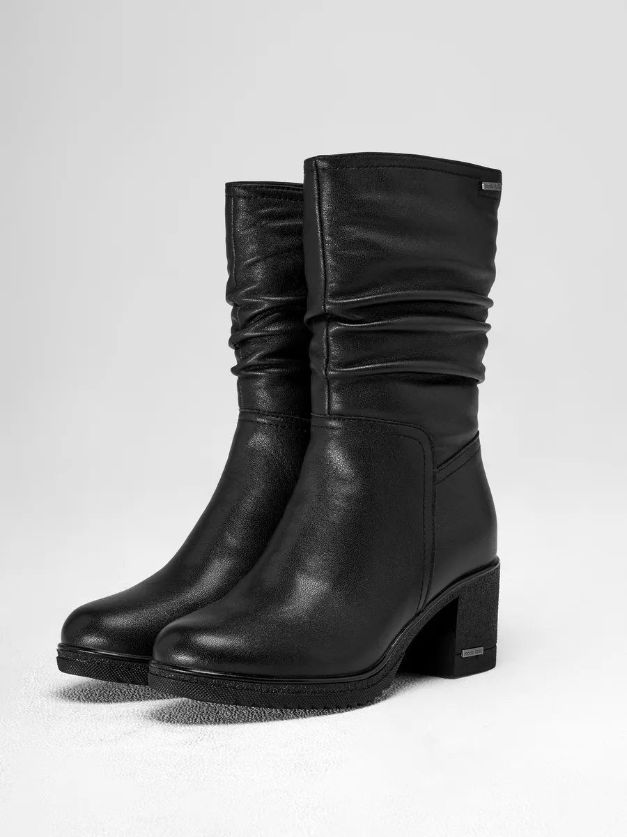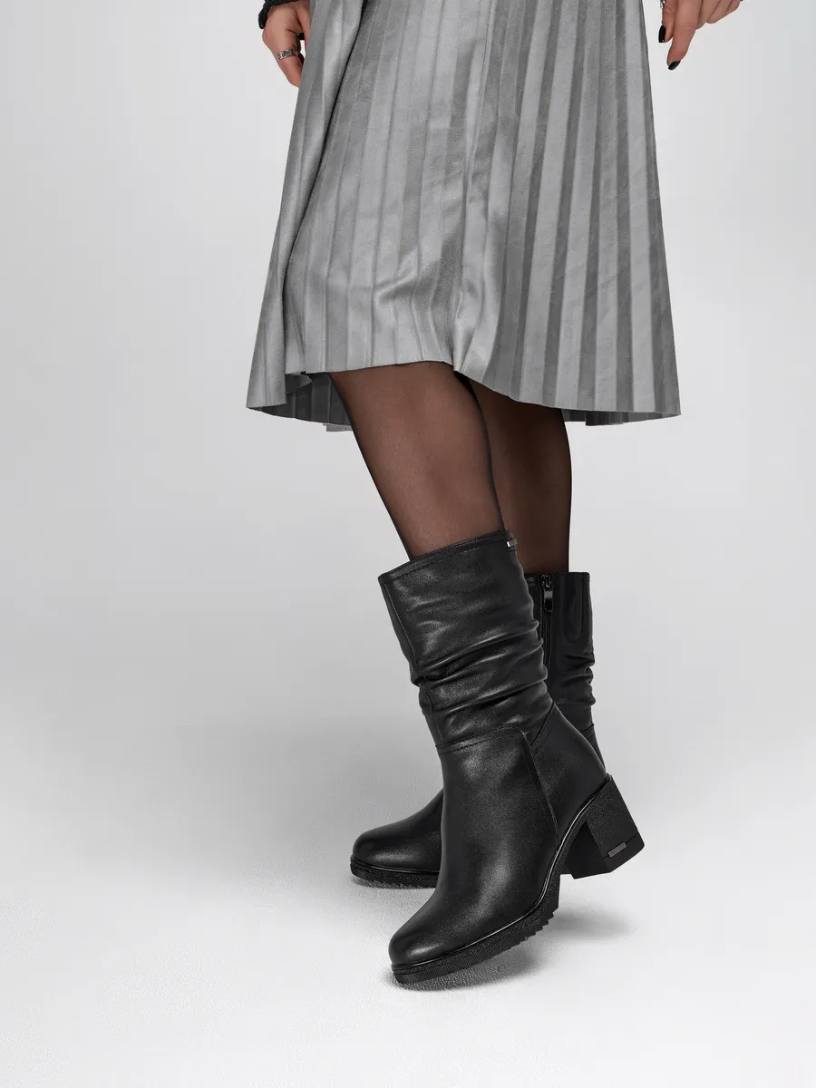 Удобный низкий каблук позволят ощущать себя более устойчиво на скользкой поверхности в зимний период. Классические короткие сапоги черного цвета подойдут к любому наряду, делая Ваш образ неповторимым. Эти сапоги - тренд 2025 года.