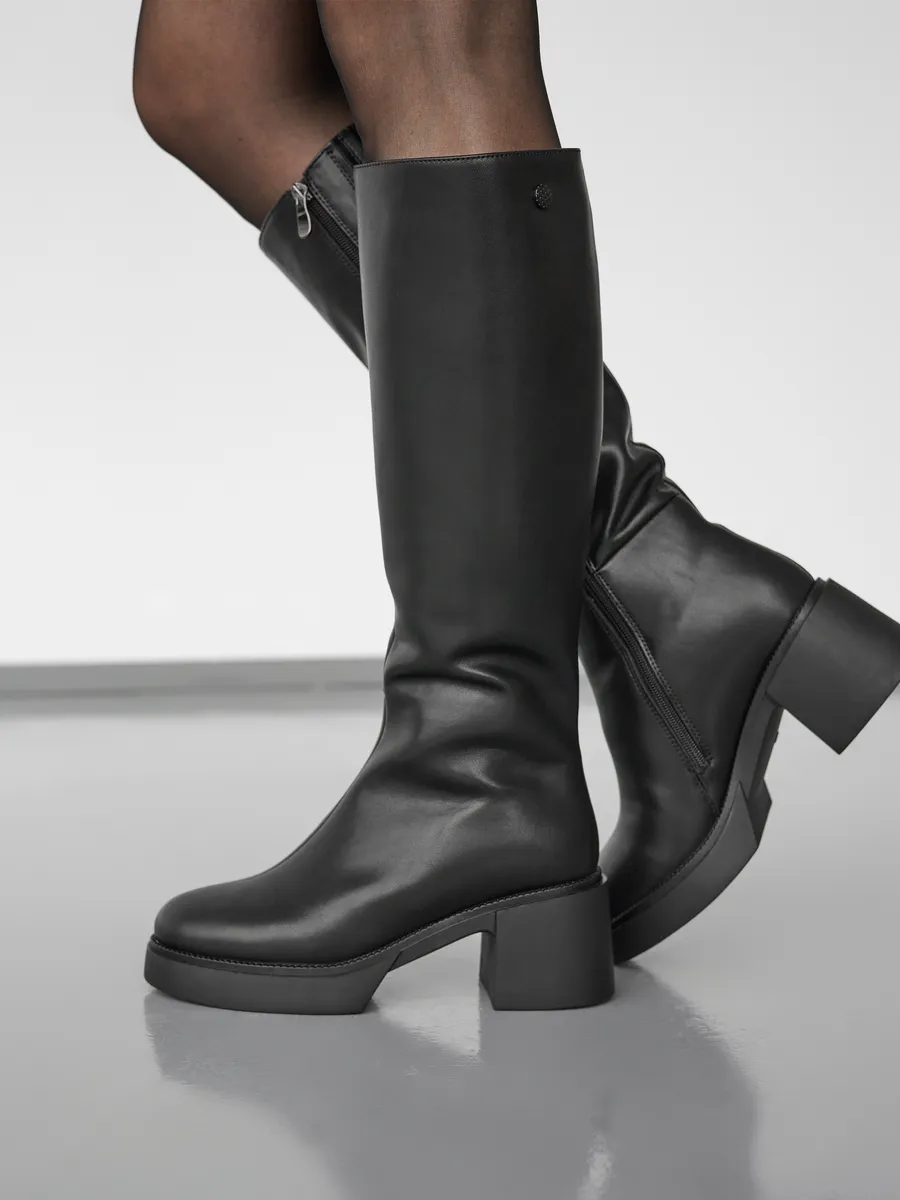 Эти женские сапоги созданы для зимы, обеспечивая отличный комфорт. Обувь из натуральной кожи гарантирует, что ваши ноги останутся теплыми в холодный сезон 2025 года. Это утепленные сапоги для тех, кто ищет стильные и практичные решения. Сапоги на платформе подходят для создания модных образов и обеспечивают уверенность на скользких поверхностях благодаря нескользящей подошве.