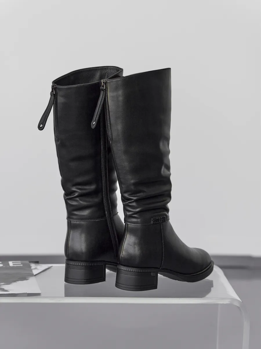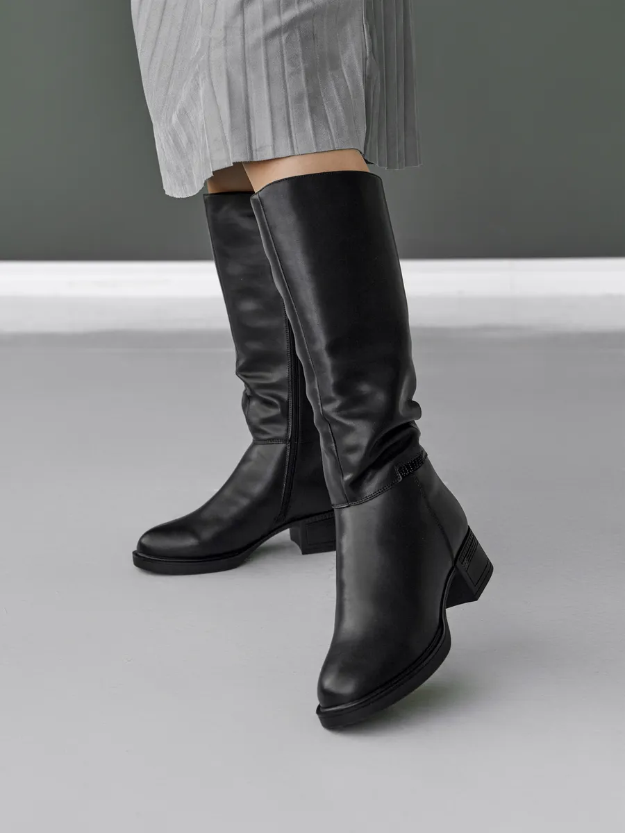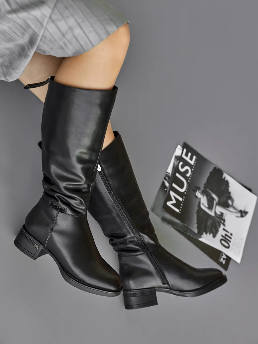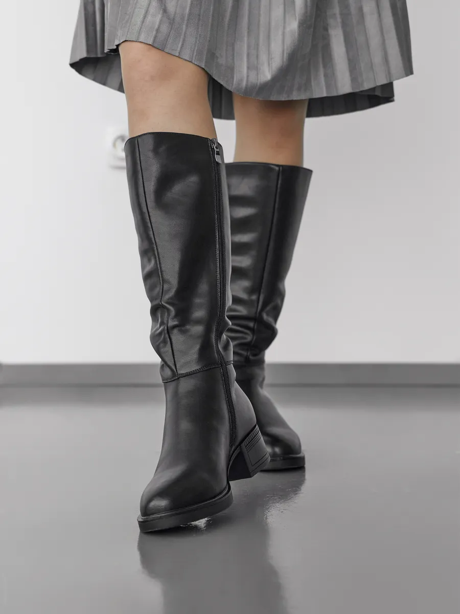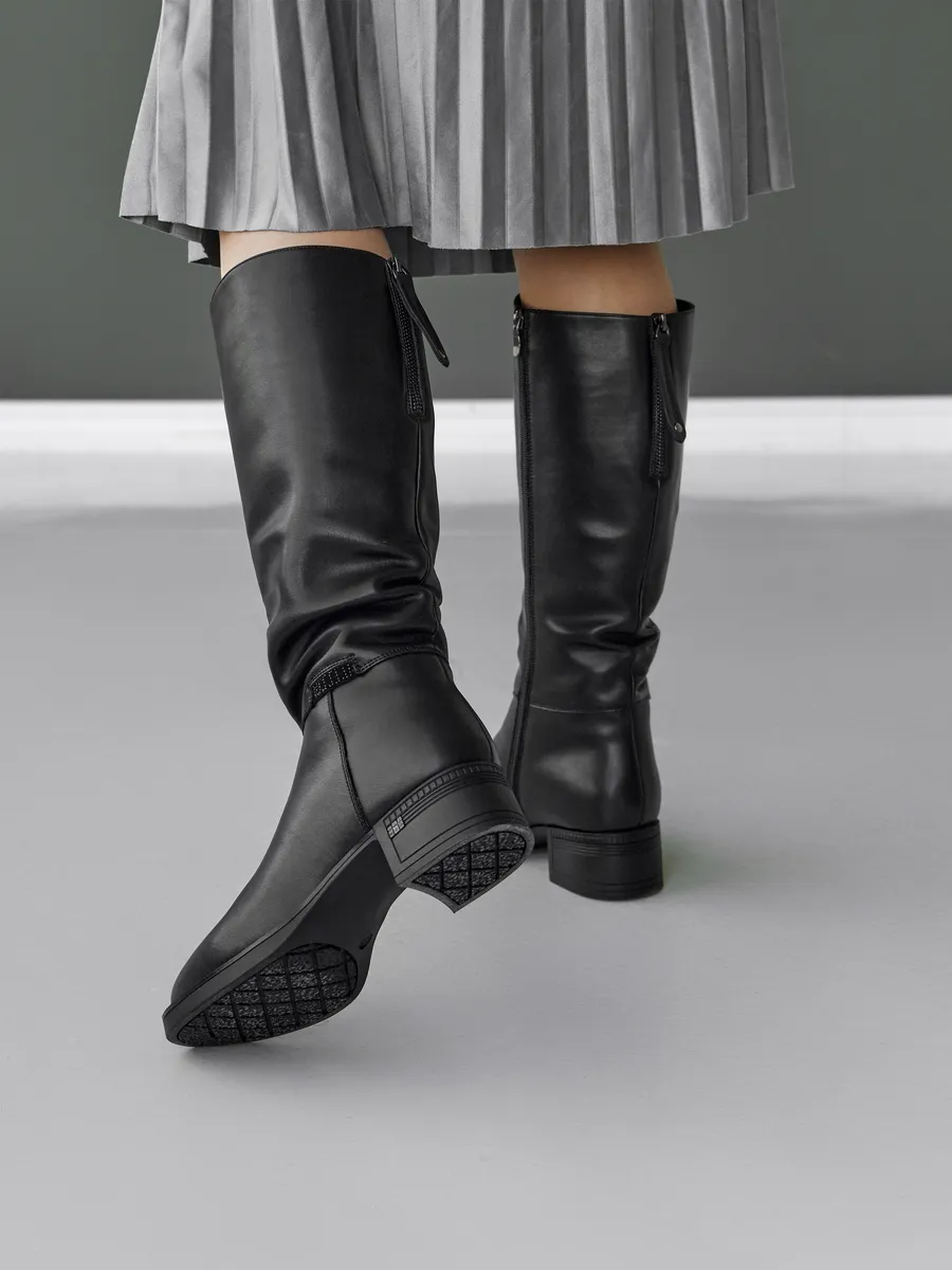 Женская зимняя обувь представлена высокими сапогами, идеально подходящими для холодного времени года. Эти классические сапожки выполнены из натуральной кожи, что придаёт им элегантный вид и обеспечивает долговечность. Кожаные модели всегда остаются в моде, а зимнее время требует особого внимания к выбору обуви. Сапоги подходят для женщин, предпочитающих стильные и практичные решения.