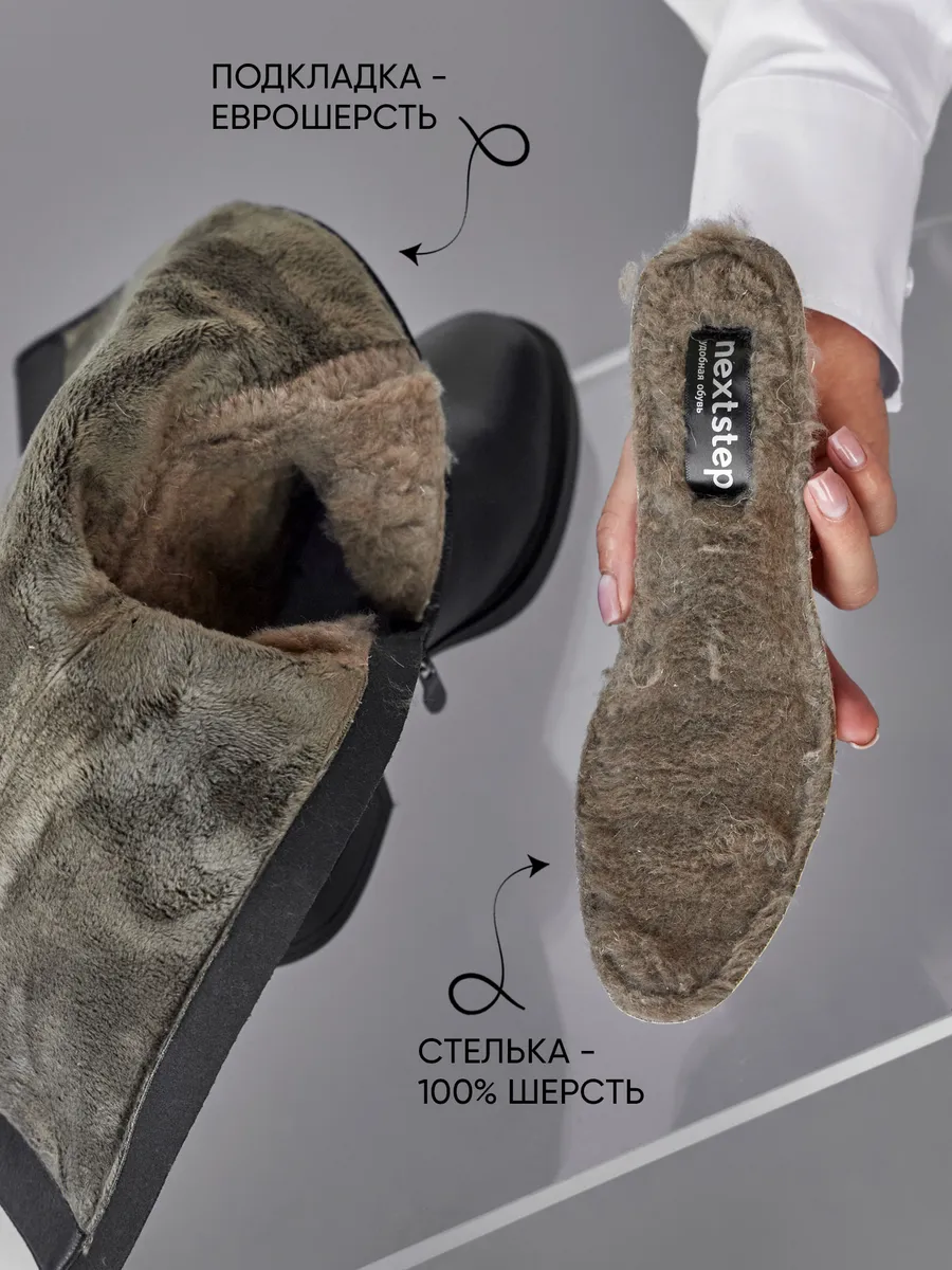 Высокие сапожки отличаются удобной молнией сбоку, что облегчает процесс обувания и снимает лишние заботы при подготовке к выходу, а так же с декоративной, но функциональной молнией на голенище, которая расширяет обхват голенища на 4 см. Мягкая подкладка с утеплителем натуральная шерсть сохраняет тепло даже в самые лютые морозы, обеспечивая комфорт в любую погоду. Непромокаемые материалы гарантируют сухость и безопасность ног на скользкой поверхности.