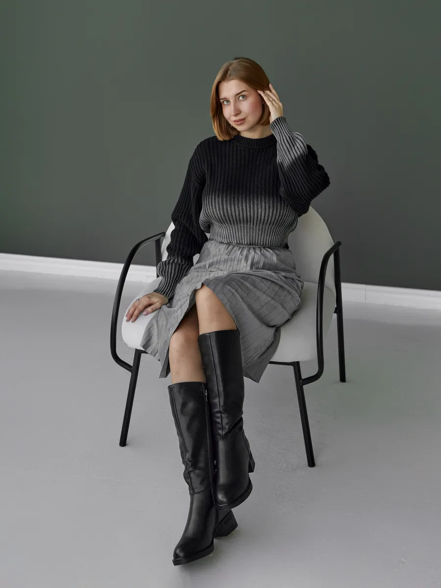 Сапоги становятся отличным решением для девушек с полной или увеличенной полнотой ноги — модель подходит даже владельцам проблемных ступней благодаря широкому голенищу в виде трубы. Ведь главное — комфорт вне зависимости от ситуации.