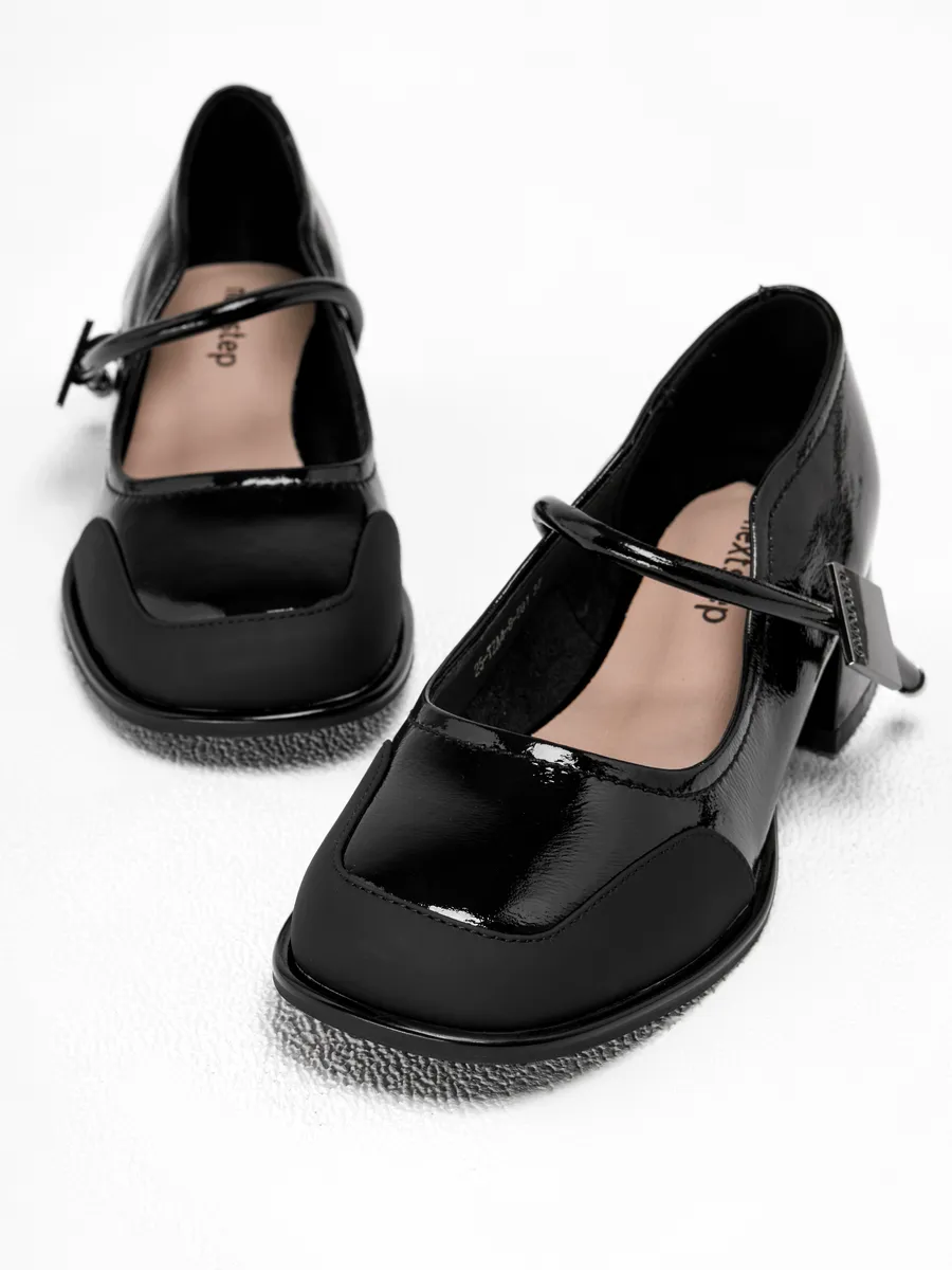 Туфли выполнены в классическом стиле с закрытым квадратным носом, что делает их утончённым выбором для женщин, ценящих сдержанную элегантность. Устойчивый каблук средней высоты обеспечивает комфорт на протяжении всего дня. Эта обувь подойдёт как для работы в офисе, так для торжественных мероприятий, повседневных прогулок.
