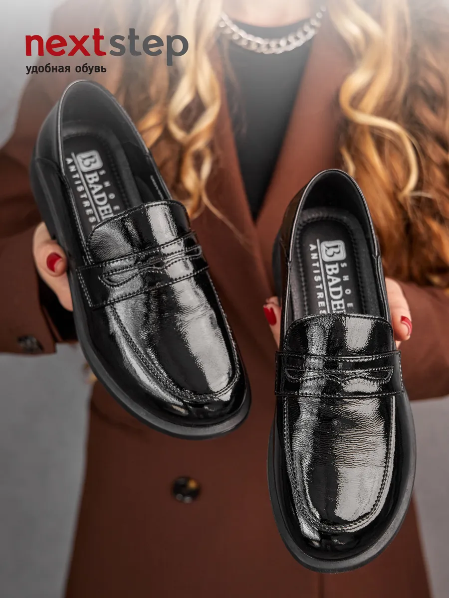 Лоферы маломерят на 0,5 - 1 размер. Ориентируйтесь на длину стельки указанную в размерном ряде. Туфли женские лаковые идут размер в размер, подходят на среднюю и увеличенную полноту ноги (7-8), выполнены из мягкой натуральной лаковой кожи, которая является дышащим и наиболее практичным материалом, она проста в уходе и долго сохраняет презентабельный внешний вид. Материал стельки высококачественная дышащая экокожа. Несъемная стелька амортизирующая и упругая. Такое сочетание обеспечивает комфортный микроклимат внутри обуви. Устойчивая и супер гибкая подошва из термопластичной резины подходит для межсезонной погоды и отличается хорошей устойчивостью к истиранию и механическим повреждениям, не скользит и обладает амортизационными свойствами, тем самым снимает нагрузку с позвоночника и поглощает удары стопы при ходьбе.