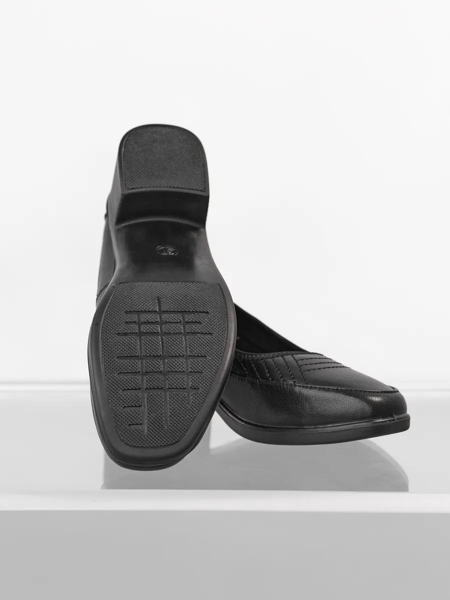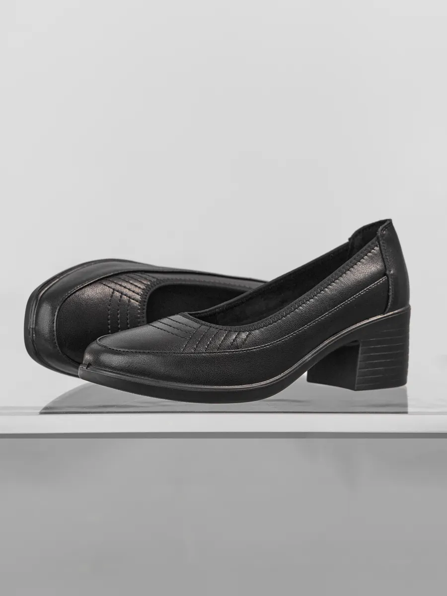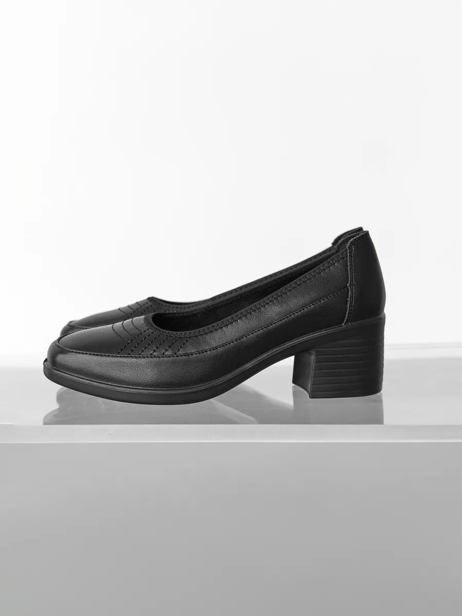 Туфли выполнены в классическом стиле с закрытым круглым носком, что делает их утончённым выбором для женщин, ценящих сдержанную элегантность. Устойчивый каблук средней высоты обеспечивает комфорт на протяжении всего дня. Эта обувь подойдёт как для работы в офисе, так для торжественных мероприятий, повседневных прогулок.