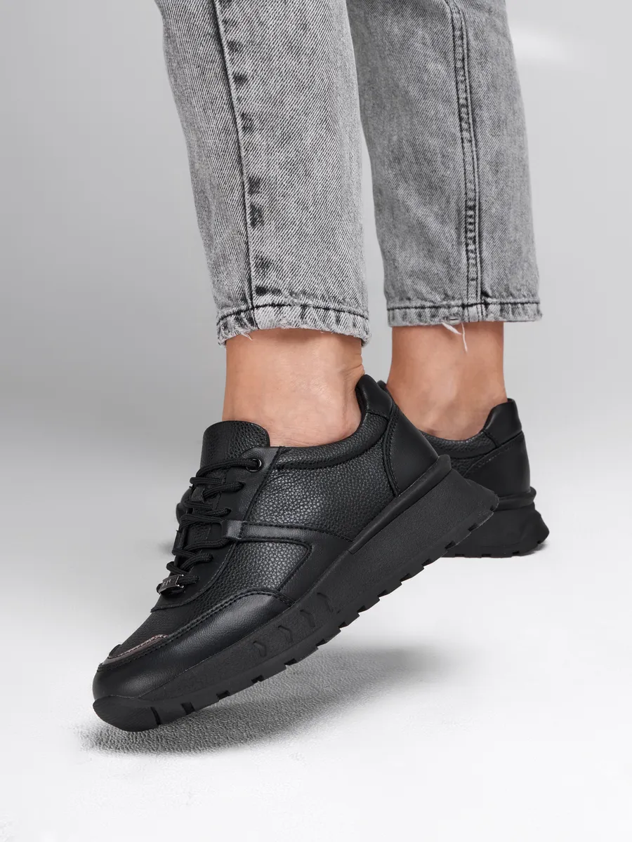 Кожаные кроссовки выполнены из высококачественных, дышащих материалов, что обеспечивает удобство и долговечность. Тракторная подошва добавляет современный трендовый вид. Они подойдут под любой наряд в стиле спорт или кэжуал.